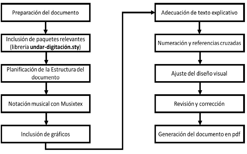 El proceso de edición editorial de material digital de música en LaTeX implica varios pasos clave para garantizar una presentación precisa y estéticamente agradable. A continuación, se describe el proceso general:
