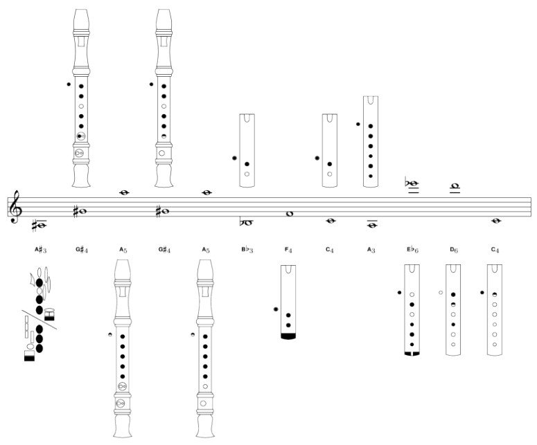 Diagrama de digitación del Pinkullo Huanuqueño, Flauta Dulce, Quena y Saxofón