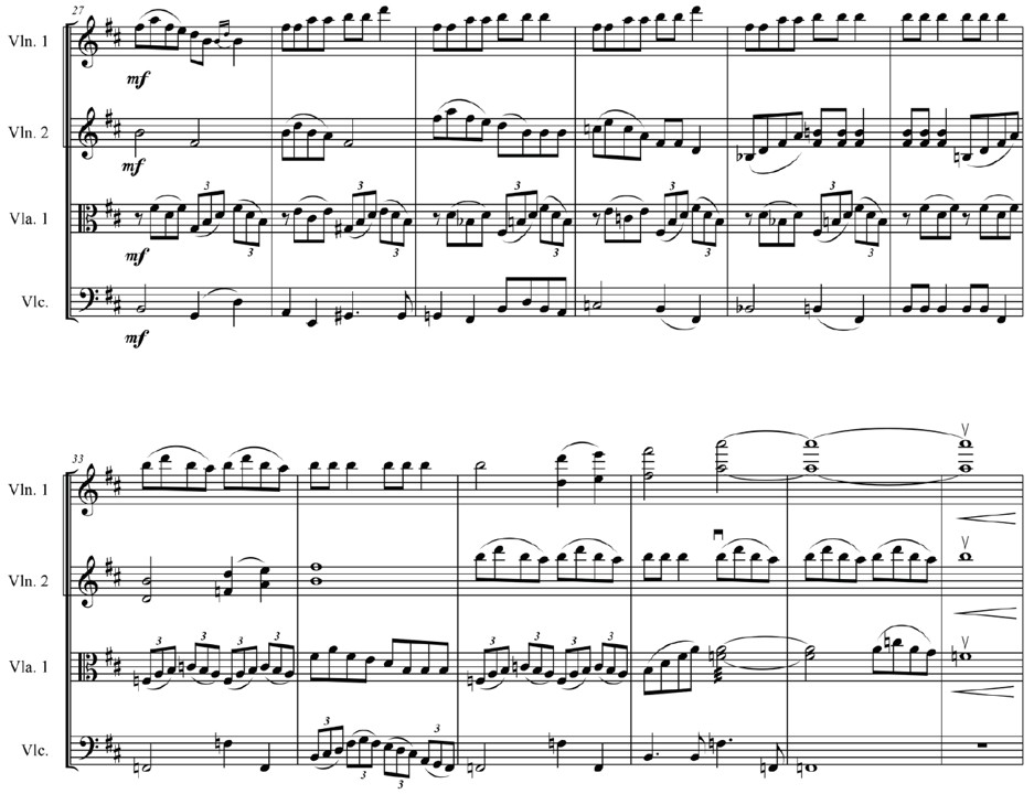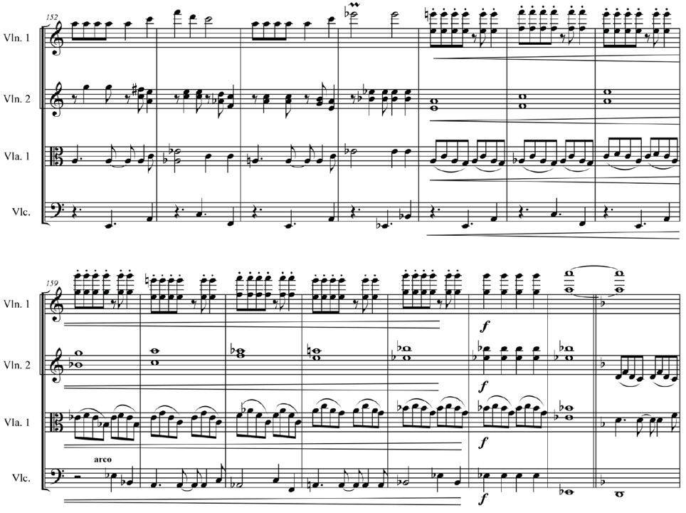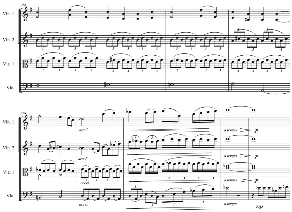 Fragmento de la sección final, compuesta para la versión de cuarteto de cuerdas