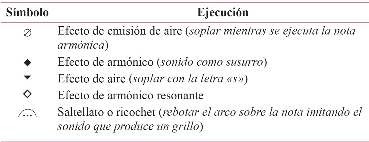 Símbolos y su ejecución en la adaptación de «Ayawaska» para cuarteto de cuerdas