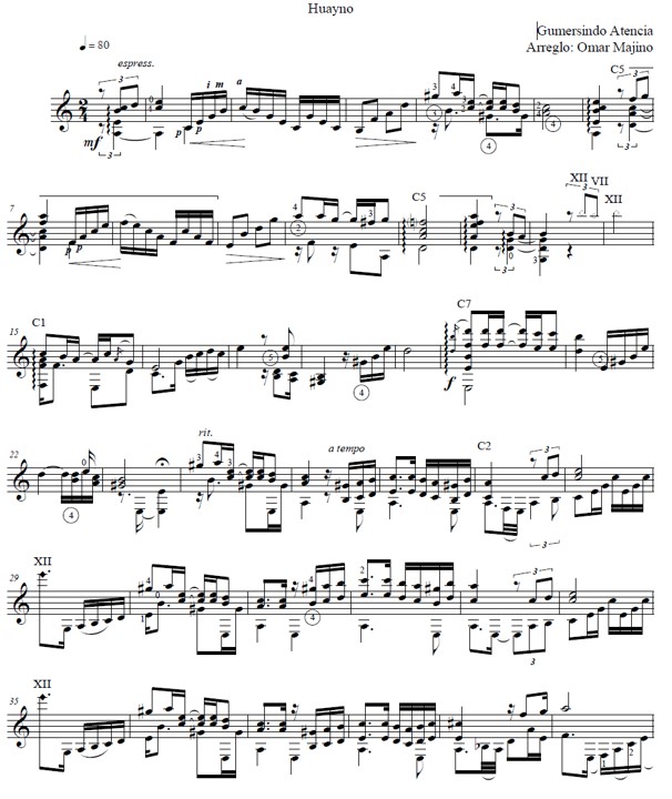 1. Análisis musical del huayno “Soledad” de Francisco Gumersindo Atencia Ramírez: arreglo para guitarra solista por Omar Majino Gargate