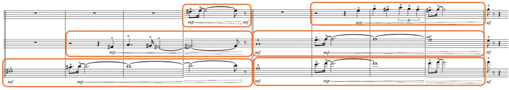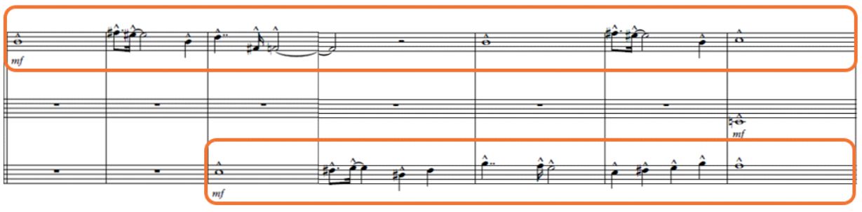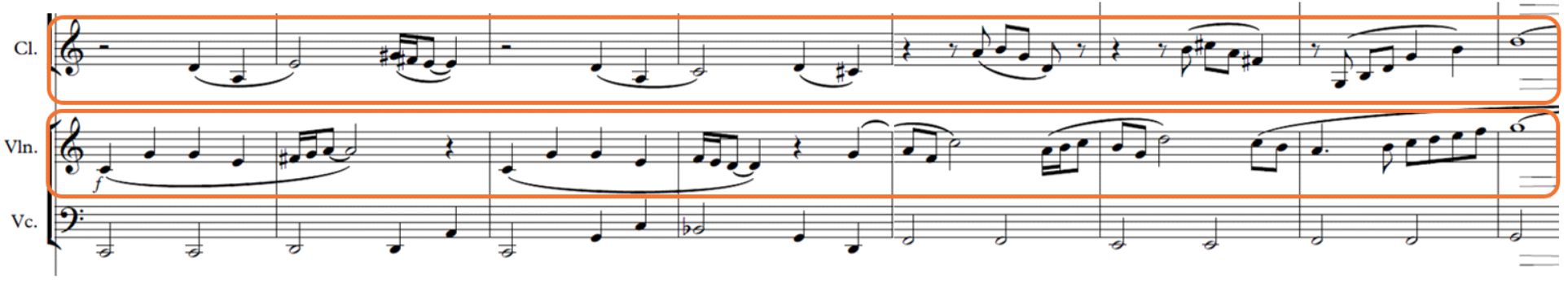 Según la clasificación de texturas orquestales detalladas en el capítulo II del libro de Walter Piston, están presentes las siguientes: