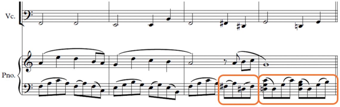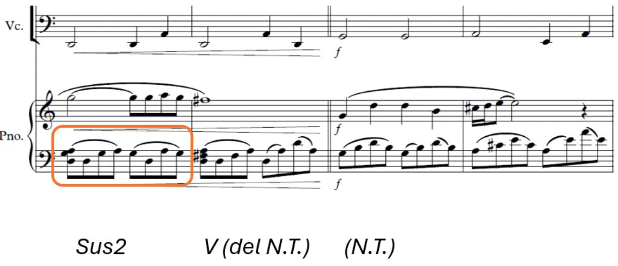 Enlace armónico sobre el sistema axial de Bela Bártok (compás 43)