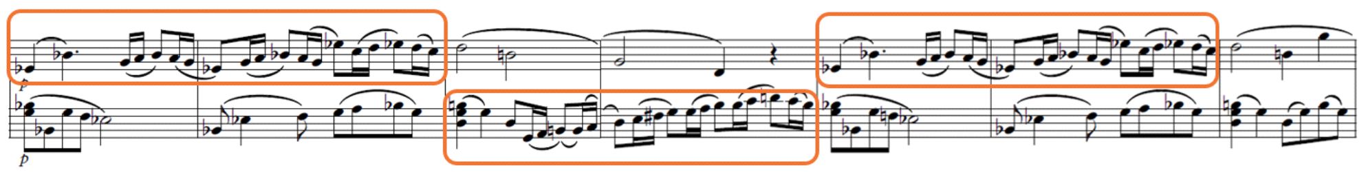 Modulación cromática (compás 14, 27, 39, 51, 95)