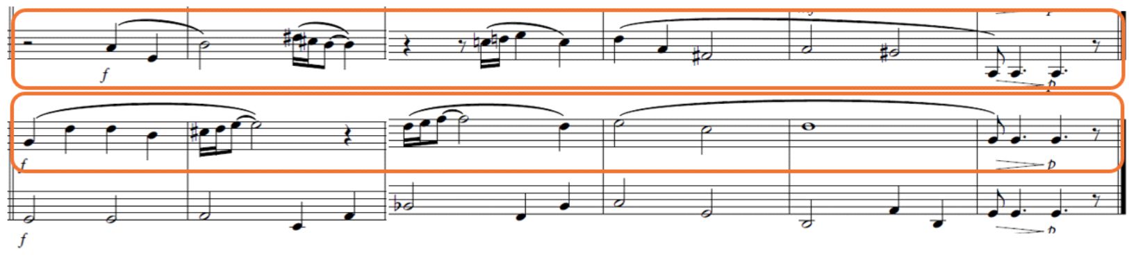 Escala menor armónica/ presentación del segundo motivo (compás 21)