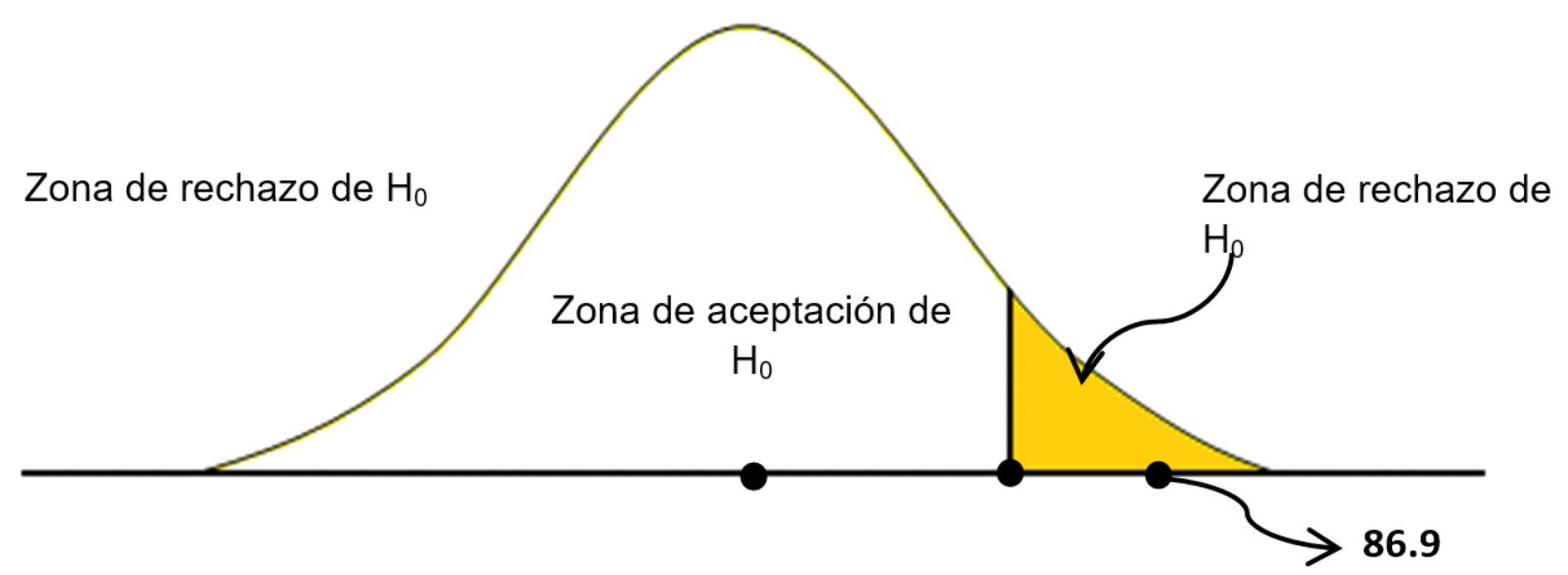 Acerca de la comprobación de la hipótesis se obtuvo una t = 86,9, lo cual significa que se encuentra en la región de rechazo, la misma que es mayor que 2,0 (valor crítico) y además p(sig.0,000)<(α=0,05); por tanto, se rechaza la hipótesis nula y se acepta la hipótesis alterna. En consecuencia, se concluye que existe evidencia suficiente para afirmar que los grupos produjeron puntajes diferentes, a un nivel de significación de 0.05. En consecuencia el programa de relajación de Jacobson y música de Vivaldi disminuye los niveles de ansiedad en los alumnos universitarios de Daniel Alomía Robles de Huánuco.